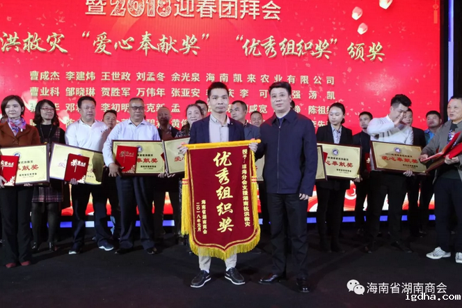 曹会长表示,商会自2016年9月换届以来,在湘籍老领导和办事处的关心支持下,稳步发展,得到了琼湘两省党委政府及相关部门的肯定。商会的凝聚力不断加强,平台作用发挥明显,会员企业成长加快,转型升级势头强劲,社会影响力进一步扩大。会员企业在做强做大的同时,积极响应湖南省委省政府“迎老乡、回故乡、建家乡”的号召,回湘投资累计突破50万元。商会和会员勇于承担社会责任,热心公益事业。2018年是改革开放40周年,海南建省办特区30周年,让我们在习近平新时期中国特色社会主义思想的指引下,奋力前行,勇开新局,牢记使命,不负伟大新时代。