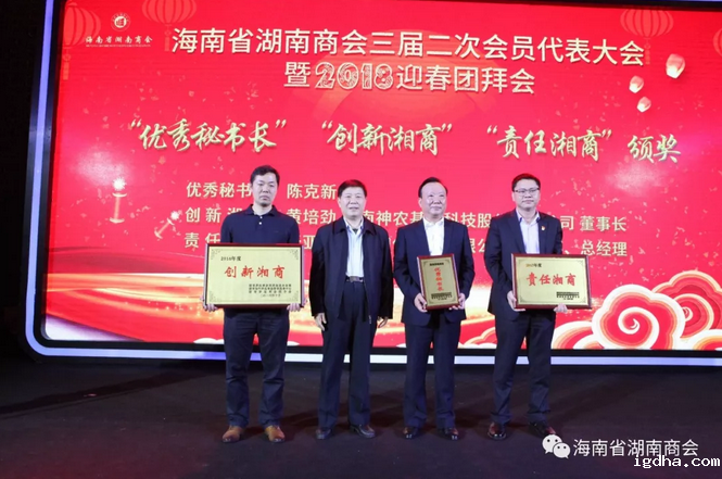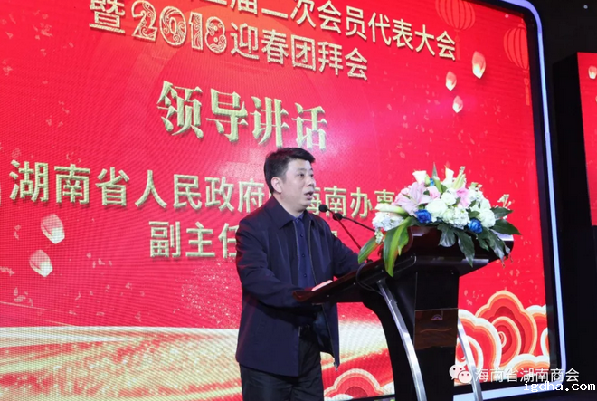 陈琼鹏巡视员在讲话中代表省工商联对商会三届二次会员代表大会和迎春团拜会的胜利召开表示祝贺,感谢商会、全体会员和在琼湘籍企业家为海南经济社会发展所做出的重要贡献。陈巡视员表扬新利18手机官网登录树立了良好形象,希望商会再接再厉,促进会员企业发展,为海南经济发展献计出力。