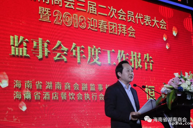 【新利18手机官网登录副监事长/海南省酒店餐饮协会执行会长陈恒作监事会年度工作报告】