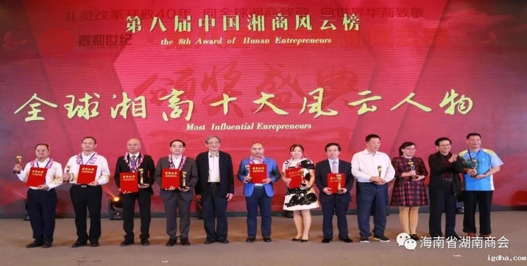 当天晚上,一年一度的湘商年度盛宴“第八届中国湘商风云榜”在博鳌揭榜。包括“全球湘商十大风云人物”“全球湘商十大杰出商会会长”“全球湘商十大创新创业人物”“全球十大责任湘商”“全球湘商十大新锐人物”等五大榜单悉数出炉。同时,还特别为在改革开放进程中为湘商事业做出突出贡献者授予“致敬改革开放40年”系列奖项,一批杰出湘商、行业先锋、华商商会领袖受到表彰。
