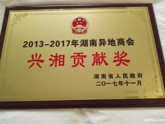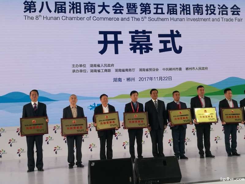 新利18手机官网登录被湖南省人民政府授予2013——2017年湖南异地商会"兴湘贡献"奖,并受到隆重表彰,李建炜会长代表商会接受颁奖。湖南省委副书记、省长许达哲出席开幕式并讲话,省领导陈君文、何报翔、张大方出席并为兴湘贡献奖获奖单位颁奖,会议取得圆满成功。(通讯员 肖颂华)